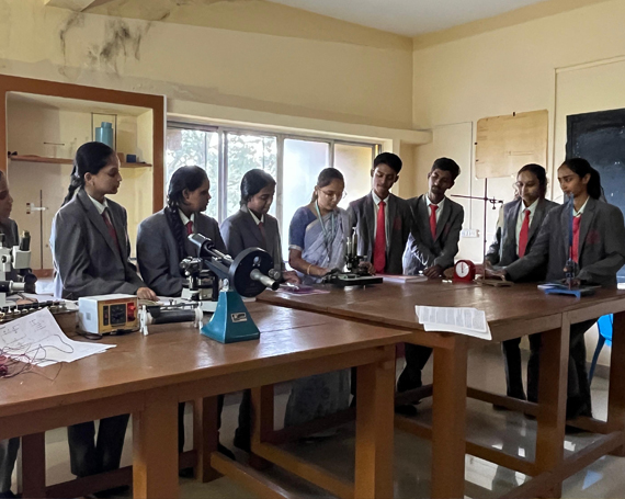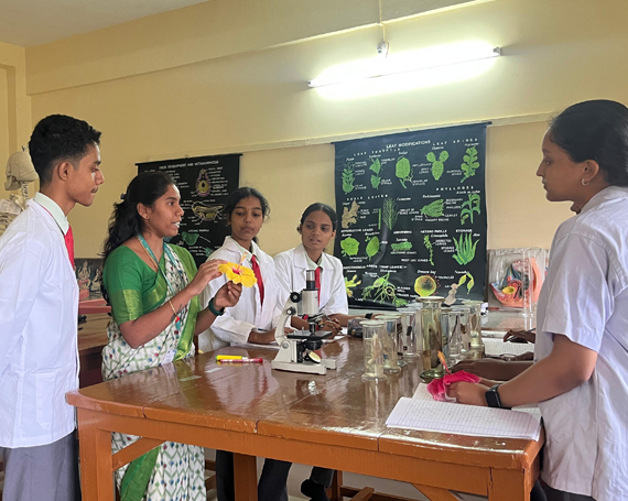 The Biology lab promotes self-learning through the use of microscopes to observe cell division and the internal structure of tissues. Students get first-hand experience on diversified plant , animal and human physiology.